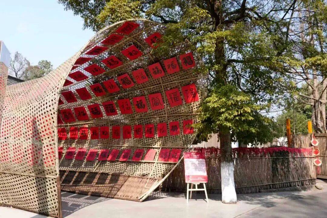 走进道明镇竹艺村?赏非遗、品美食、逛市集,青瓦白墙的川西平易近居点缀其间,正月初五(2月21日)还有财神巡逛派发新春福袋,